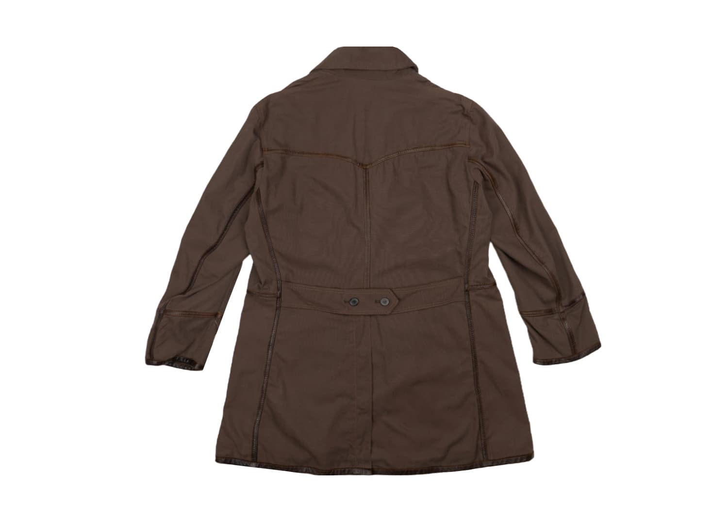 Пальто выполнено из плотного высококачественного хлопка с отделкой из натуральной кожи.