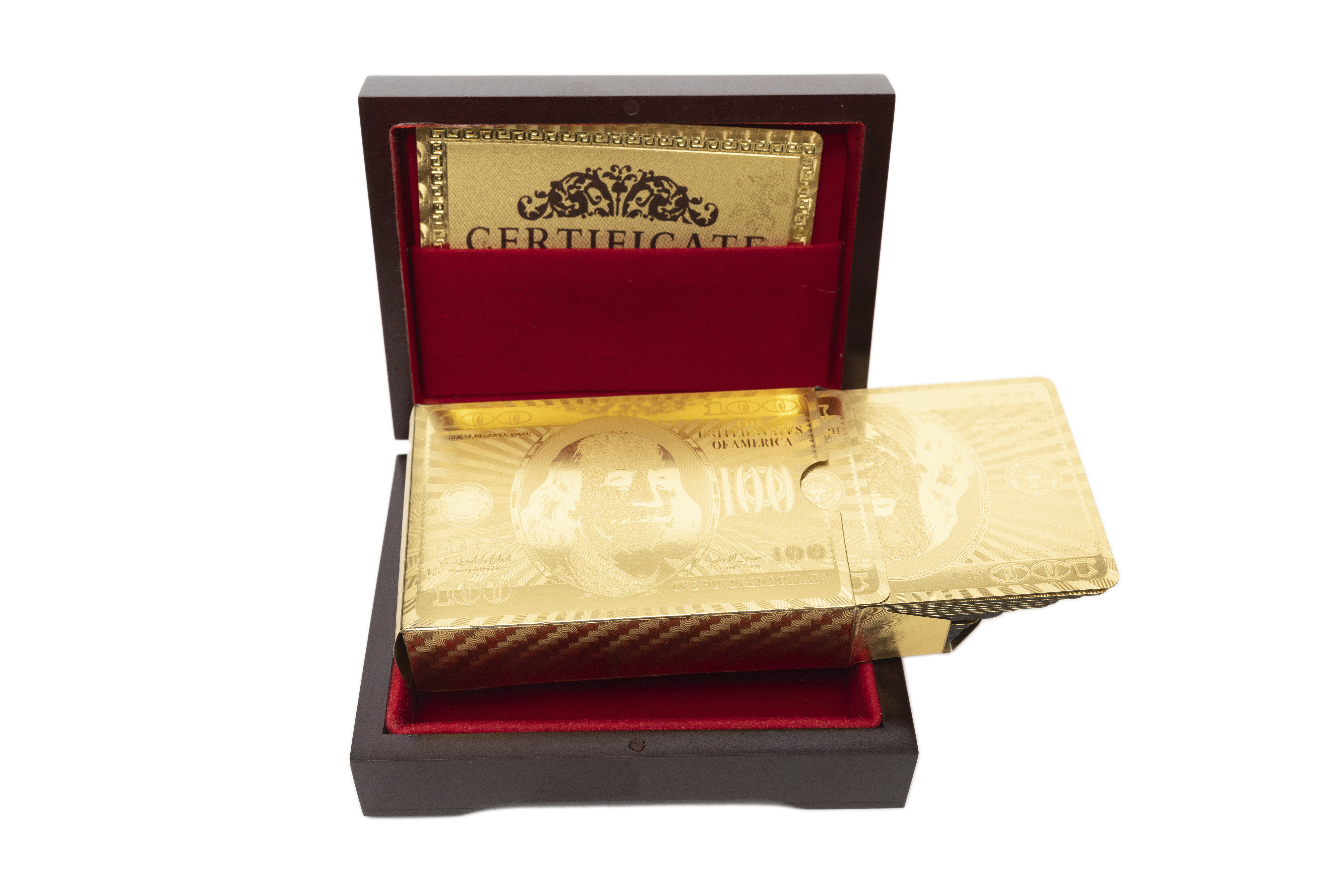 Подарочный набор позолоченных игральных карт в деревянной шкатулке, станет интересным и необычным подарком на любой праздник.