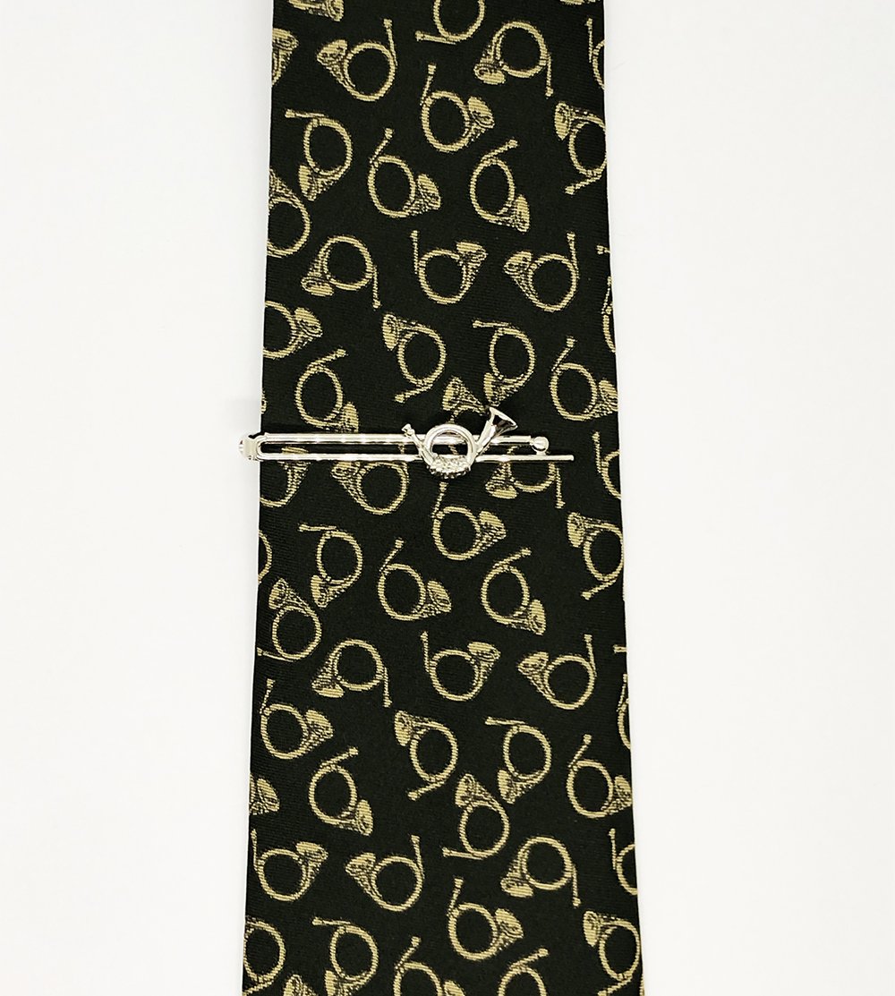 Мелаллический зажим для галстука и изображениями на охотничью тематику.
